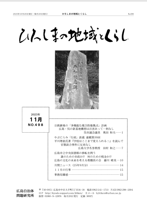| 2025ひろしま自治体学校記念講演に京都橘大学 学長 岡田知弘を決定 | (2025/10/10) |