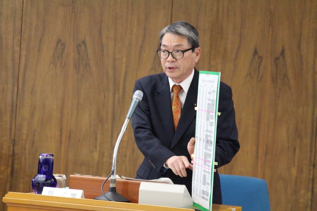 『みんなで減災』県民総ぐるみ運動」について、辻県議は、「県が砂防ダムなどを整備することが前提だ。また、運動は上からの押付けではなく、自主的、民主的な取組みにしていくことが大切」と指摘しました。